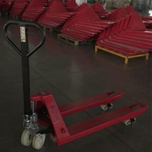 Description:Durable 2.5-ton red hand pallet truck designed for smooth lifting and easy handling. Ideal for warehouse and factory material transport.