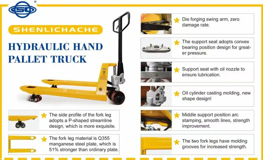 Shenli Lifting Equipment Co., Ltd. is a professional Hand Pallet Truck manufacturer in China, specializing in the design, production, and export of manual pallet jacks, hydraulic hand pallet trucks, and material handling equipment. With advanced production facilities and strict quality control, we ensure every product delivers outstanding performance, safety, and durability for warehouse, factory, and logistics applications.